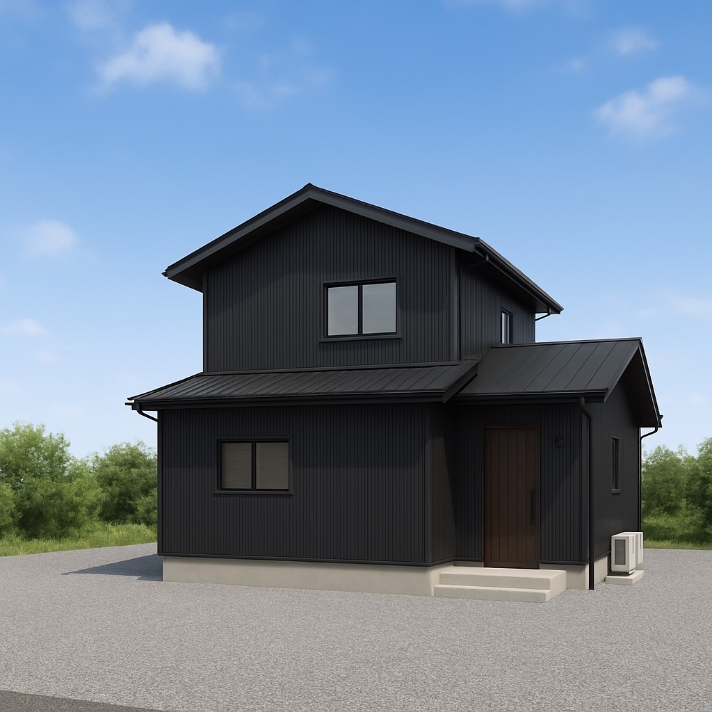 外観は思いきって黒のガルバリウムでスタイリッシュに仕上げました!